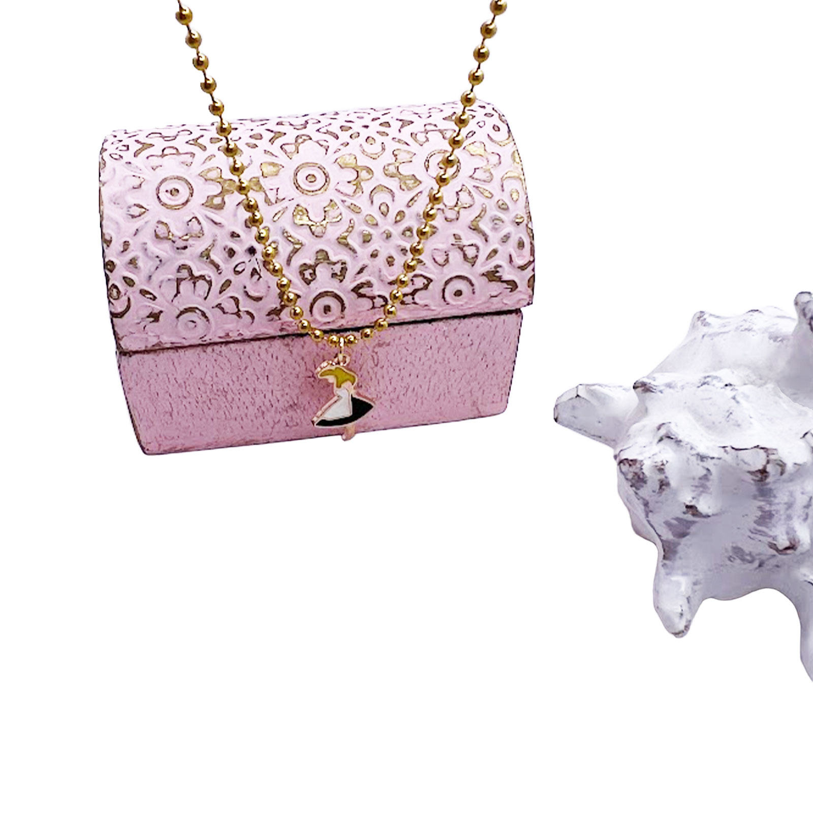 Crafted with meticulous attention to detail, the Alice in Wonderland charm captures the curiosity and adventure that have enchanted readers for generations. The delicate gold-toned pendant gleams with a warm lustre, while the surgical steel gold ball chain offers both durability and elegance against your skin. As it rests near your heart, this Necklace serves as a daily reminder to embrace life’s adventures, to stay curious, and to believe in impossible things. The lightweight design ensures comfortable all-day wear, making it perfect for both everyday whimsy and special occasions that call for a touch of magic.