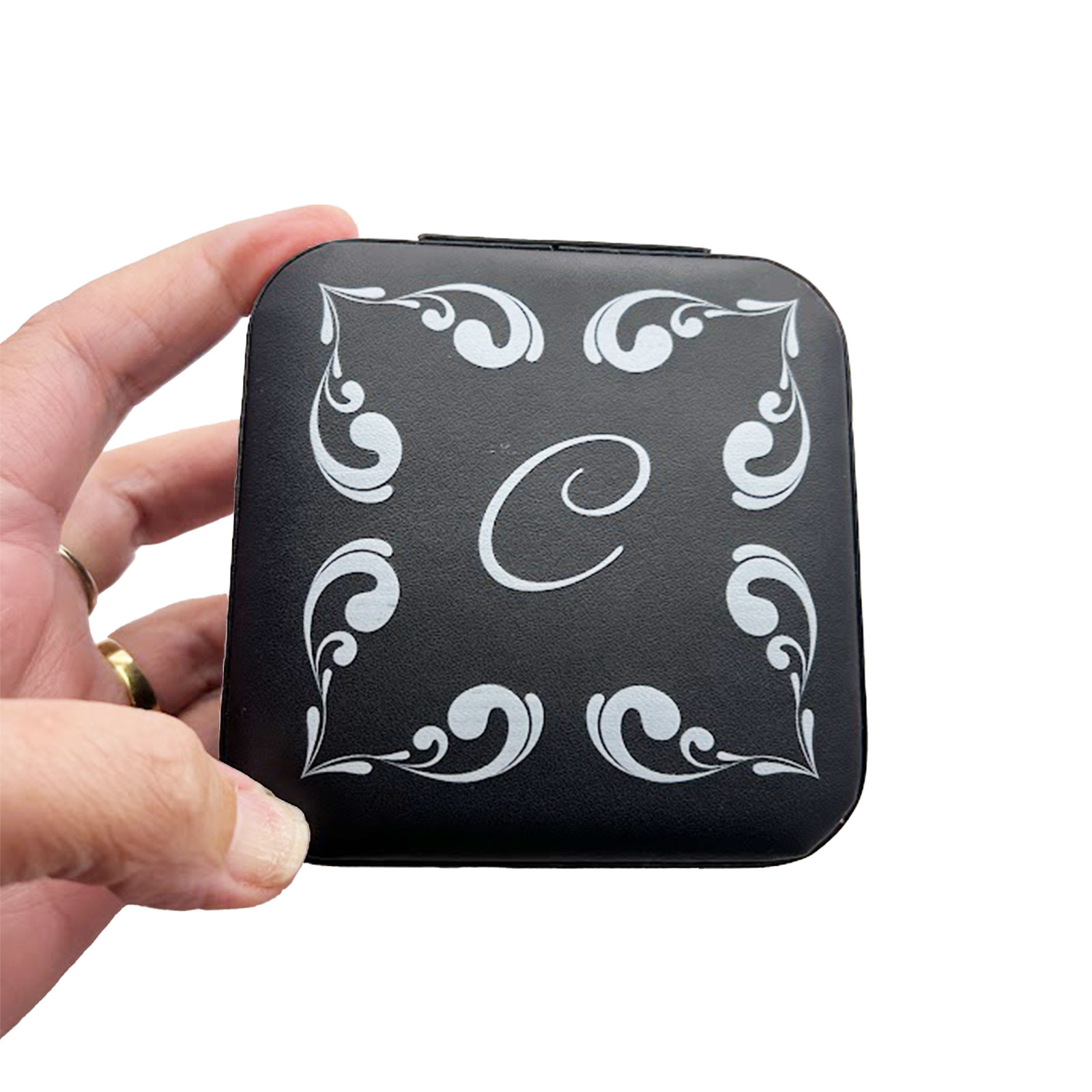 This case is about more than just storage; it is about “peace of mind” for the accessories that tell your story. The rich black finish provides a chic backdrop for the personalisation, while the clever interior layout ensures your treasures remain tangle-free and organised. The lid features dedicated hooks and a pouch to keep valuable chains draped safely, while the soft compartments below gently cradle your earrings and rings. It is a little luxury that ensures every gem remains scratch-free and ready to wear the moment you arrive.