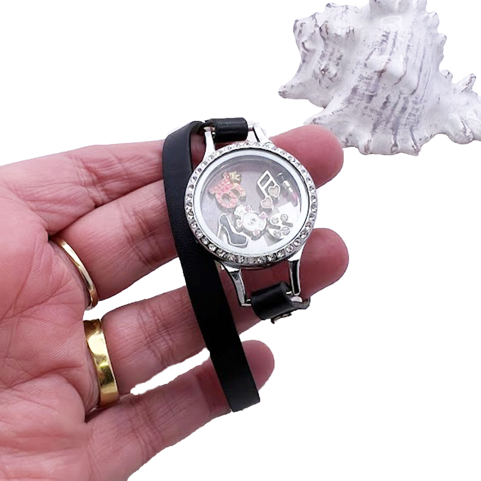 Floating charms are sold separately from floating lockets, leather wraps, and bands.