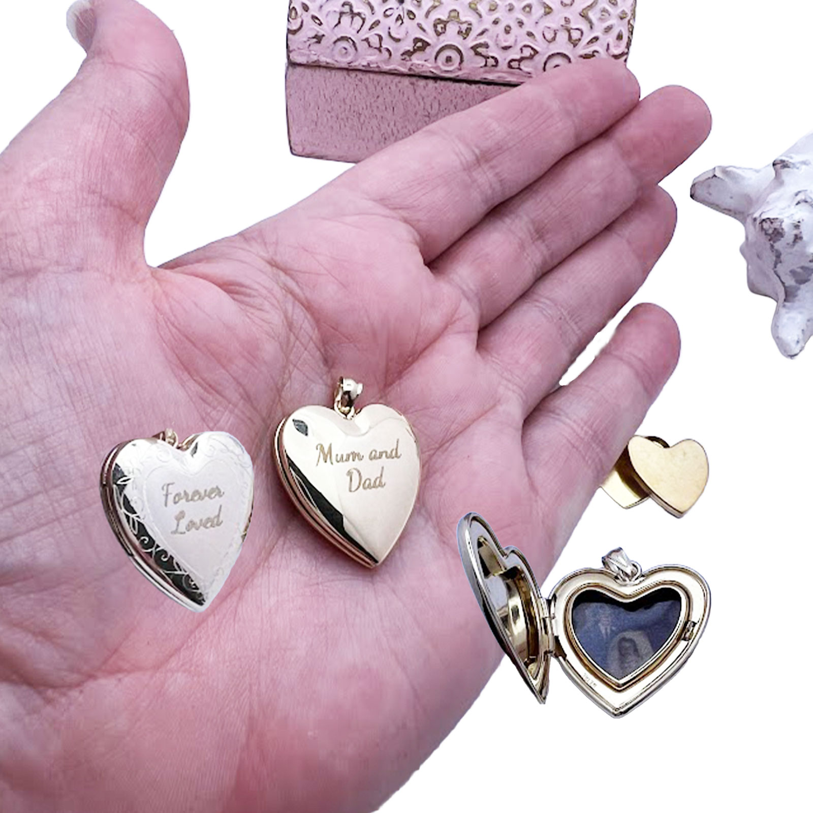 Our stunning memorial heart locket is available in your choice of solid sterling silver or 9ct yellow gold. A complimentary laser-engraved message on the front and back, along with a full-colour photo on the inside, completes your treasured Memorial Heart Locket.