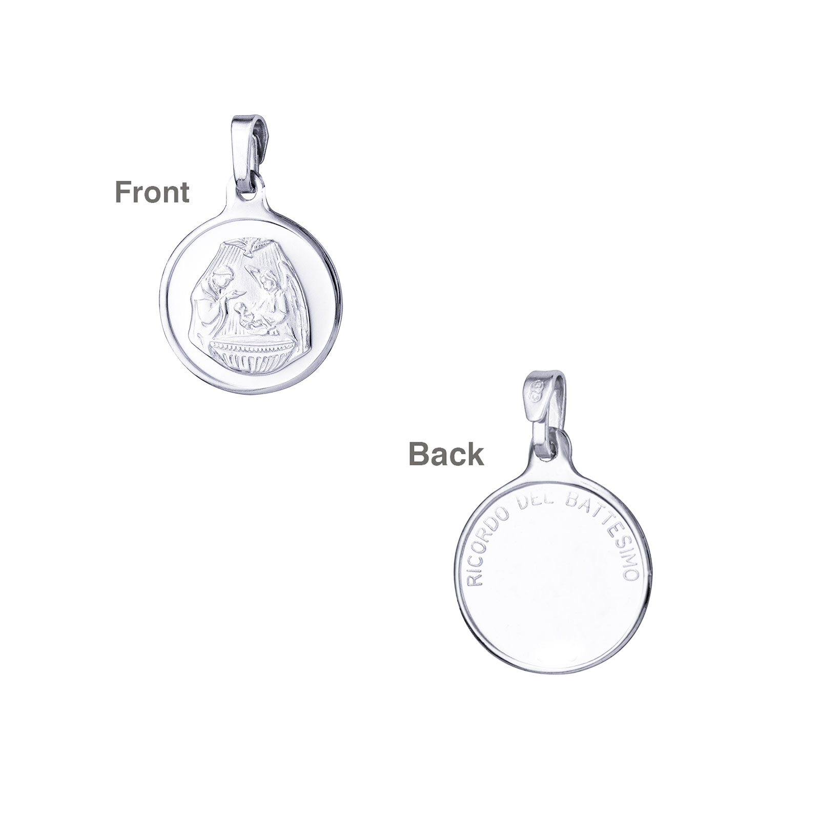 - Design: Delicate religious baptism symbol with polished finish
