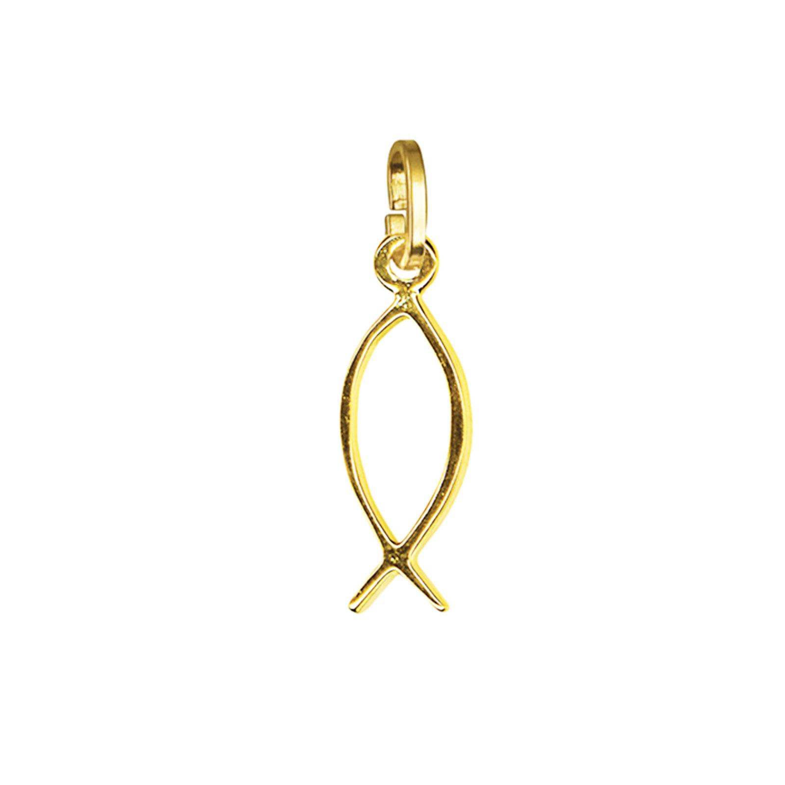 Carry a symbol of ancient faith close to your heart with our elegant Religious Fish Charms. The Ichthys, or Christian fish symbol, has been a sacred emblem of belief for centuries, representing spiritual nourishment and the faithful following of Christ. This timeless piece allows you to express your devotion in a subtle yet meaningful way, with your choice of precious metal and size to complement your personal style perfectly.