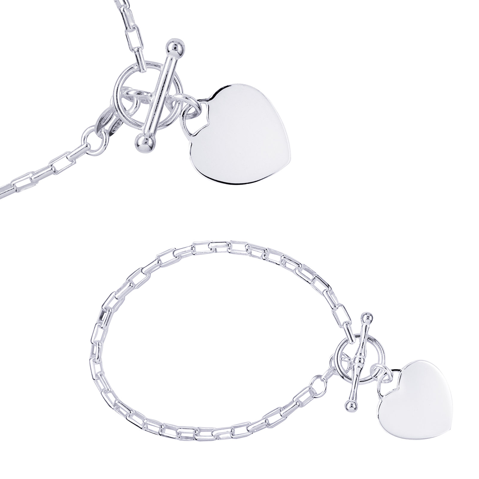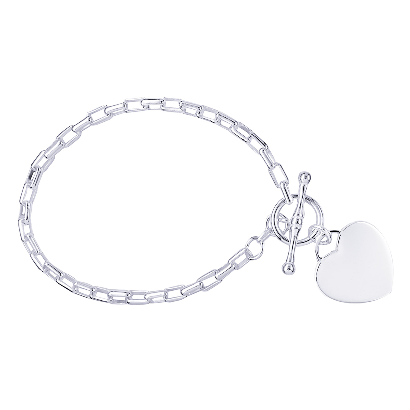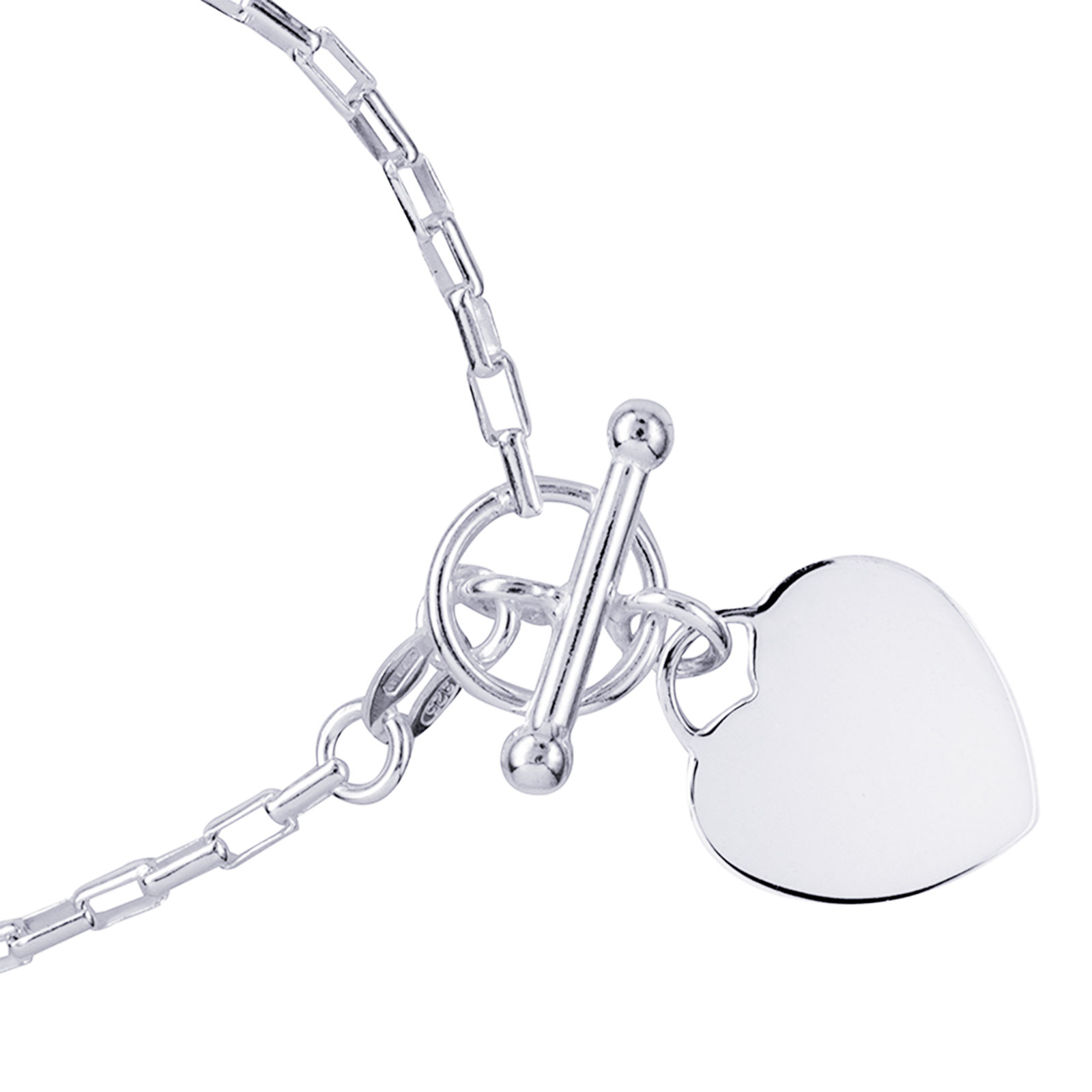 Crafted from radiant, solid sterling silver, this bracelet is designed to be a constant companion. The cable-link chain offers a fluid, comfortable drape around your wrist, while the iconic T-bar clasp adds a touch of sophisticated security. The heart pendant is not just a charm; it is a blank canvas awaiting your story. Offered with complimentary laser engraving by our expert team, you can immortalise a name, a significant date, or a meaningful word, turning the cool shimmer of silver into a warm, lasting memory.
