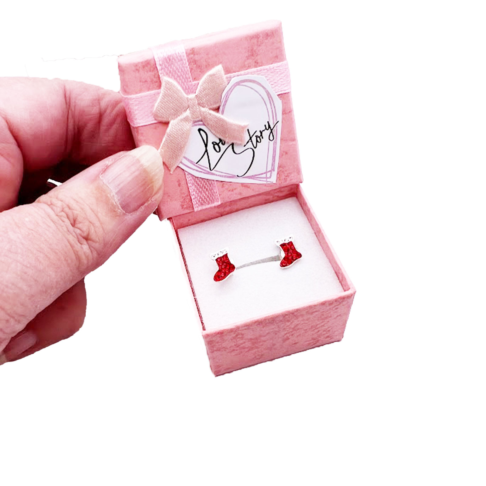 Each earring is crafted from solid 925 sterling silver, ensuring it is a keepsake to last for Christmases to come. The body of the stocking sparkles with brilliant red crystals, topped with a fluffy white cuff that catches the light with every happy turn of your head. Their exquisite, petite size makes them the perfect festive flourish—subtle enough for daily wear, yet sparkling enough for a special Christmas party.
