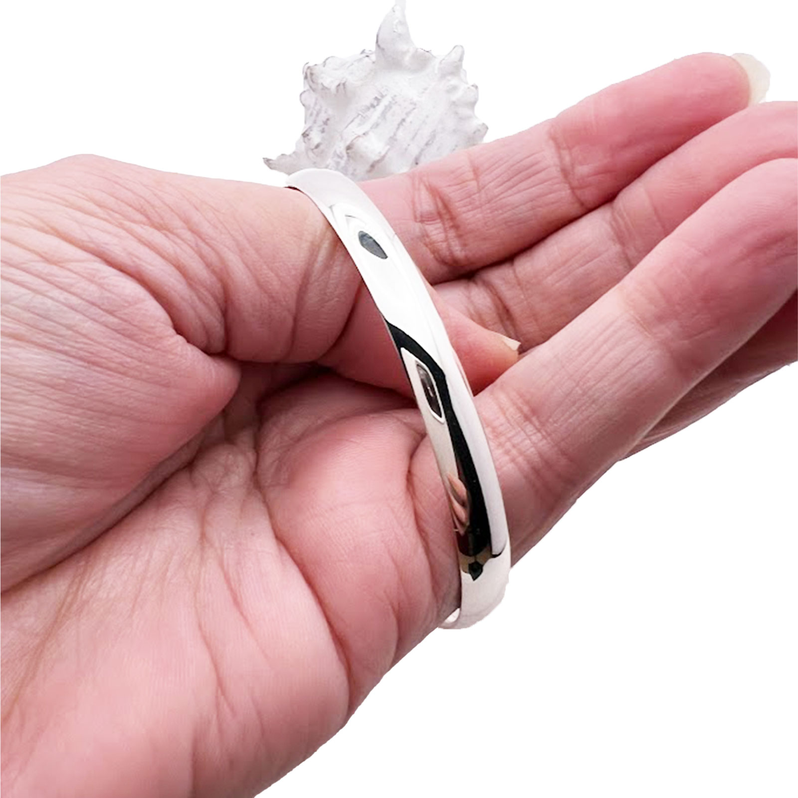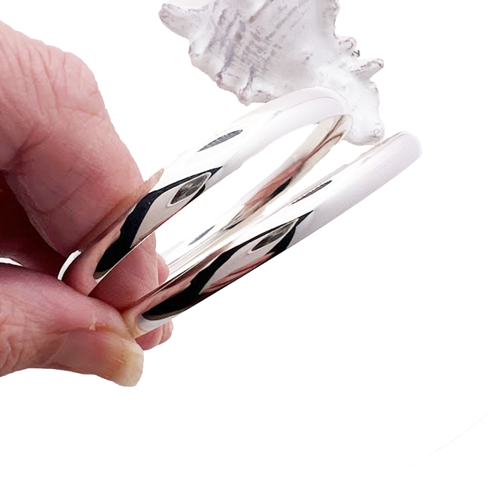 Upgrade your style game with our stunning, solid sterling silver oval bangle! Available in 5.5 or 7mm widths and various sizes, it’s the flawless accessory to elevate any outfit. Add this timeless piece to your jewellery.