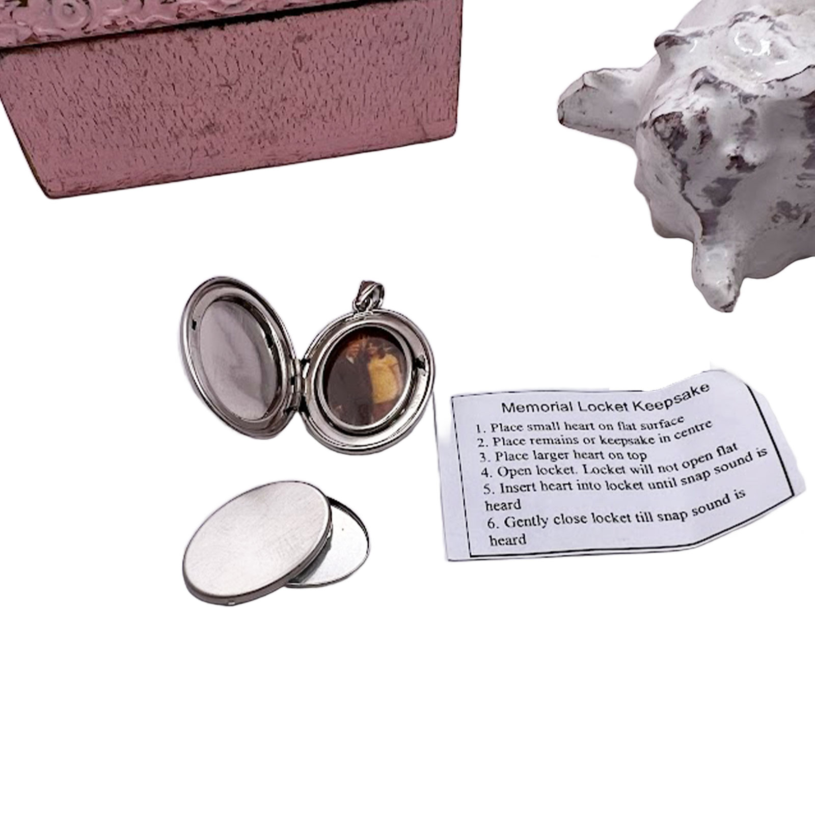 The oval memorial locket for hair is crafted from solid sterling silver and measures approximately 25mm x 20mm. Ashes and Hair Locket Australia ships from Lake Macquarie, NSW.