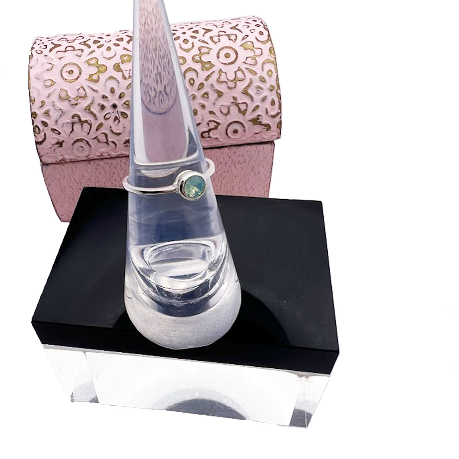 Crafted from solid sterling silver, this ring is a lasting heirloom that glows with elegance on your finger. The heart of the piece is a captivating 5mm Pacific opal, which radiates stunning green and blue hues that change beautifully with every movement of your hand. Whether it serves as a reminder of a seaside escape or a reflection of your own calm spirit, this ring brings a touch of ethereal coastal luxury to your everyday collection.
